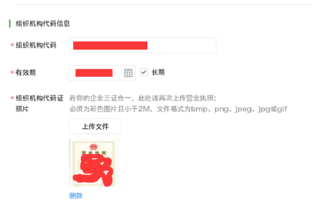 B.組織機構(gòu)代碼證信息,如企業(yè)三證合一,則填寫上傳營業(yè)執(zhí)照信息