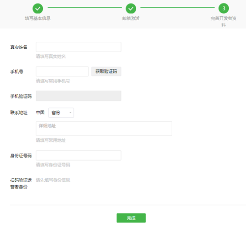 第三步:填寫開發(fā)者資料,提交即可注冊(cè)成功