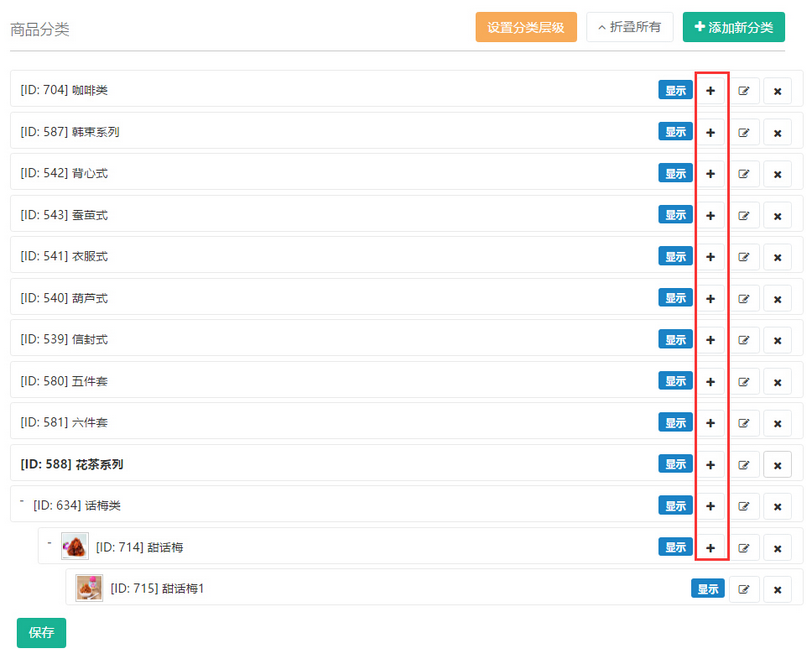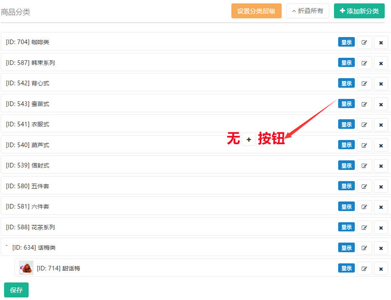 如商品分類列表中無“+”按鈕,參見下圖: