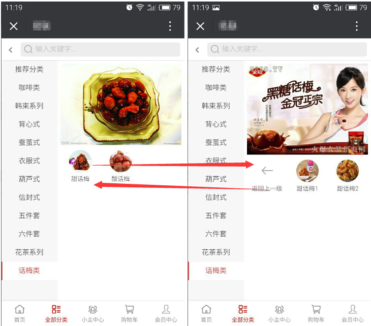 添加后的商品鏈接在“商品分類”列表中列示,分類的順序是按照添加分類時填寫的“排序”,數(shù)字越大信息越靠前顯示,如商品分類有子分類的話(系統(tǒng)支持最多添加3級分類),可點擊已添加分類后的“+”進行添加,參見下圖: