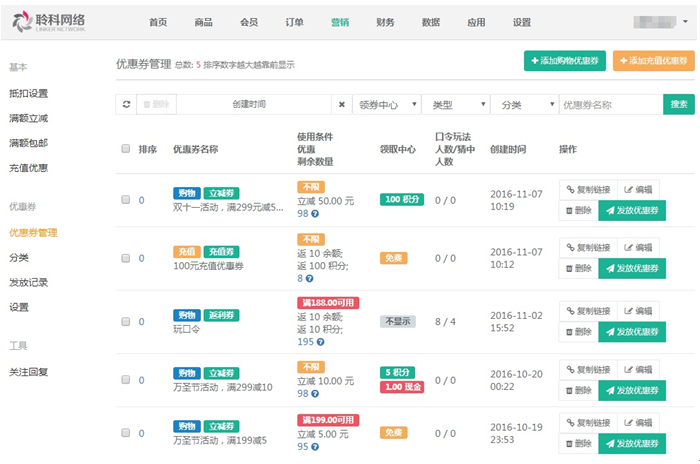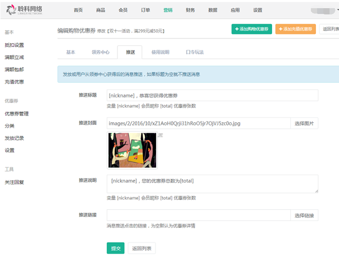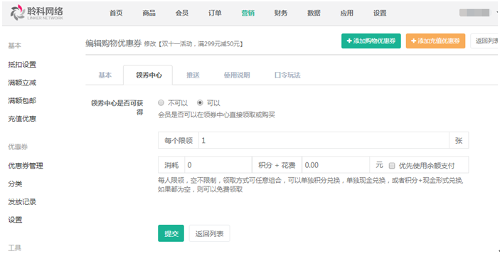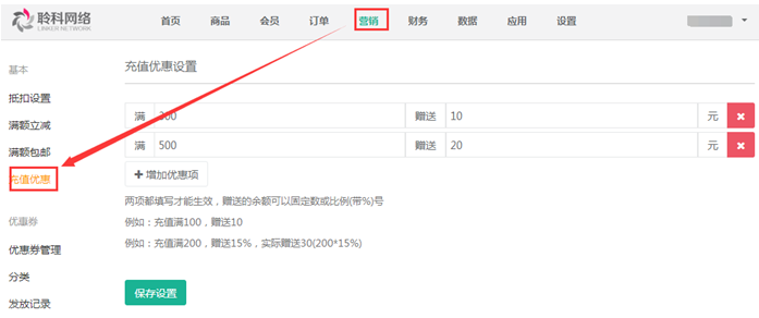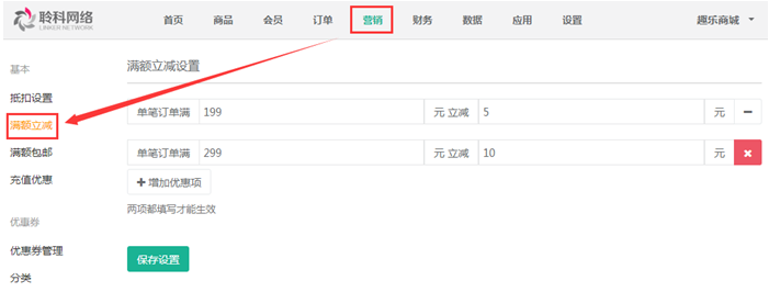 聆科微商城·營銷設(shè)置