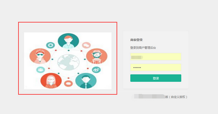 上傳的登錄頁(yè)面宣傳圖會(huì)在入駐的多商戶商家登錄頁(yè)面顯示,參見下圖:
