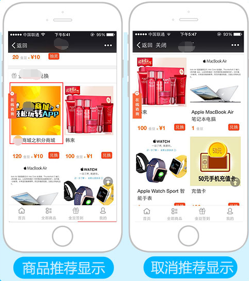 商品屬性:推薦:勾選推薦,則在積分商城首頁顯示(系統(tǒng)默認的最多顯示4件商品),參見下圖: